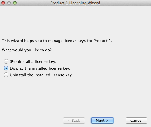 - A license management wizard dialog may prompt the user to decide if a license key for the software should get installed, displayed or (optionally) uninstalled. The next step may then depend not only on the user’s choice, but also whether a license key is currently installed or not and if it’s valid or not.