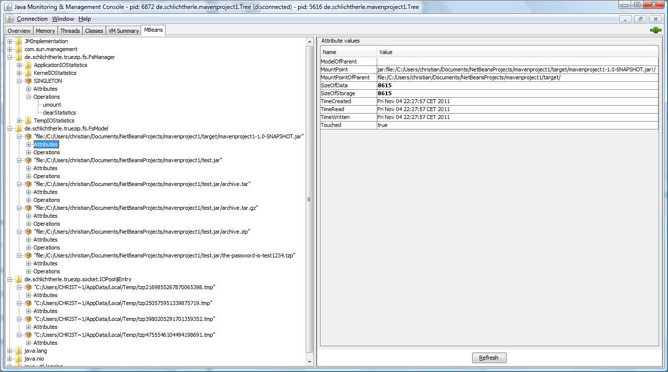 I’ve kept this module in my trunk for a while, but now it’s finally ready for show time. For more information about it, please refer to its home page at https://christian-schlichtherle.bitbucket.io/truezip/truezip-extension/truezip-extension-jmx-jul/.